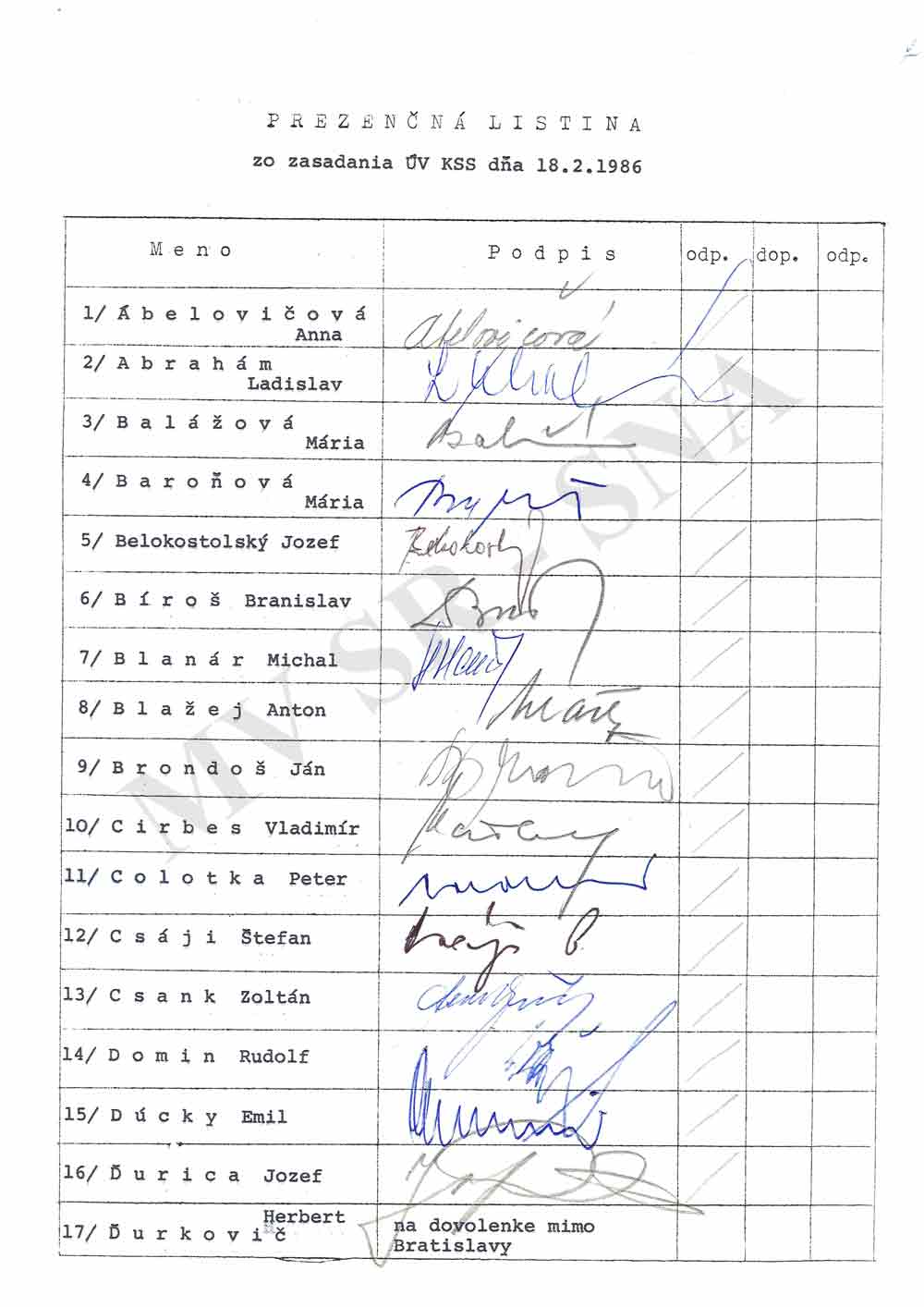Plenárne zasadnutie ÚV KSS (18.02.1986)